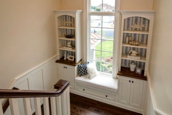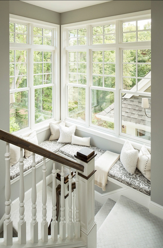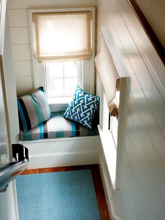 Thậm chí chỉ với băng ghế nhỏ và vài chiếc gối là bạn đã có một góc thư giãn xinh xắn bên ô cửa sổ trên cầu thang.
