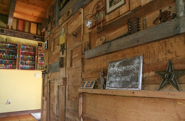 Những họa tiết trang trí đặc sắc trên tường phần lớn là do hai vợ chồng làm thủ công.