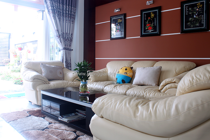 Nội thất phòng khách được tô điểm bằng gam màu vàng và nâu ấm áp