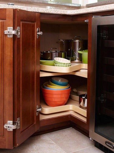 Giống với ngăn kéo, tủ lazy susan đã làm rung chuyển thế giới phòng bếp. Chúng xoay tròn làm cho việc lưu trữ ở những góc khuất (cả bên trên và bên dưới) của tủ bếp trở nên thông minh hơn. Chỉ cần mở cửa tủ bếp, xoay tròn cho đến khi bạn nhìn thấy thứ mình đang tìm kiếm và rời đi hạnh phúc vì không cần mất quá nhiều thời gian để tìm kiếm một món đồ nào đó.