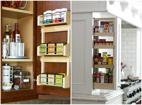 Những hộp đựng gia vị có nhiều hình dạng và kích cỡ khác nhau nhưng thường không chiếm quá nhiều diện tích. Vì thế, chúng là ứng cử viên tuyệt vời cho vị trí phía sau những cánh cửa tủ hoặc bên trong tủ kéo nhỏ bí mật.