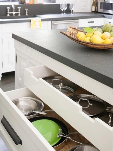 “Ngăn kéo, ngăn kéo và nhiều ngăn kéo hơn nữa. Thật tuyệt vời khi kiểm soát được mọi đồ dùng nhà bếp một cách dễ dàng khi chúng nằm trong những ngăn kéo. Thực tế, tôi cũng là fan của kiểu ngăn kéo tủ trượt lắp đặt bên trong tủ bếp. Đơn giản vì chúng thực sự rất tiện lợi khi bạn muốn lấy một thứ gì đó nằm ở vị trí trong cùng”.