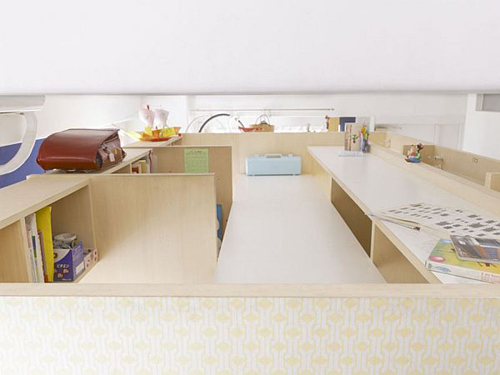 Ban đầu, căn hộ với diện tích khoảng 70m2 này được chia thành nhiều phòng khác nhau. Tuy nhiên, các kiến trúc sư nhận định việc giữ lại cấu trúc ban đầu sẽ rất khó tạo ra được một thiết kế nội thất tươi sáng và rộng rãi. Kết quả, tất cả các bức tường đã được xóa bỏ, biến toàn bộ căn hộ thành một căn phòng rộng lớn. Sau đó, hai cấu trúc hình hộp bằng gỗ đã được thêm vào, bố trí nằm trên một đường chéo. Không gian phía trên hai chiếc hộp chỉ cao 1.1 mét nhưng đủ chỗ để cho những đứa trẻ chơi đùa.