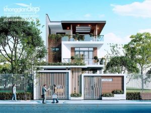 Mẫu 3D mặt tiền, phong cách thiết kế hiện đại, tiện dụng, nhẹ nhàng