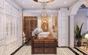 ♦ Nguy nga – Sang trọng – Lộng lẫy là những từ chính xác dùng để miêu tả căn biệt thự tại Long An. Được thiết kế lấy cảm hứng từ những toà lâu đài cổ kính, pha một chút phong cách cổ điển Pháp. Với yêu cầu 1 trệt, 3 lầu, 6 phòng ngủ, mỗi phòng ngủ là một không gian sống riêng với phòng khách và phòng ngủ. Qua sự sáng tạo và biến hoá của các KTS Không Gian Đẹp, công trình này đã được “phù phép” như thế nào???? Cùng KGĐ chiêm ngưỡng nhé!
