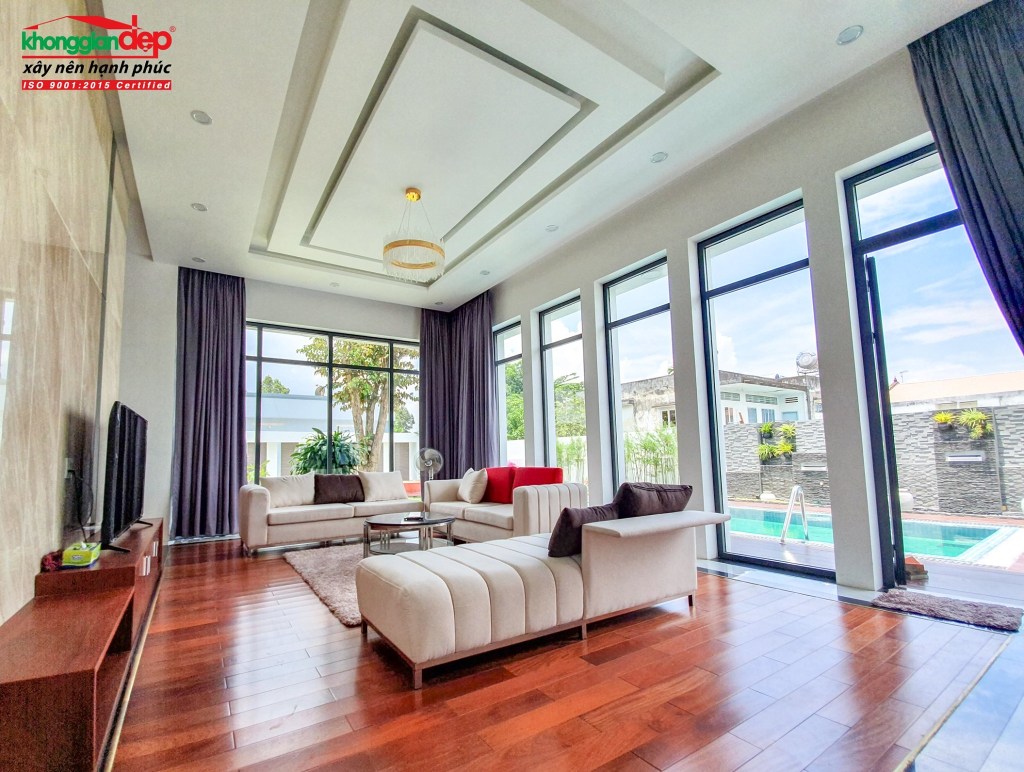 Hiểu rõ được niềm đam mê phong cách kiến trúc hiện đại của gia chủ, KTS KHÔNG GIAN ĐẸP sử dụng chất liệu gỗ đỏ kết hợp khéo léo với phong cách thiết kế hiện đại vào nội thất